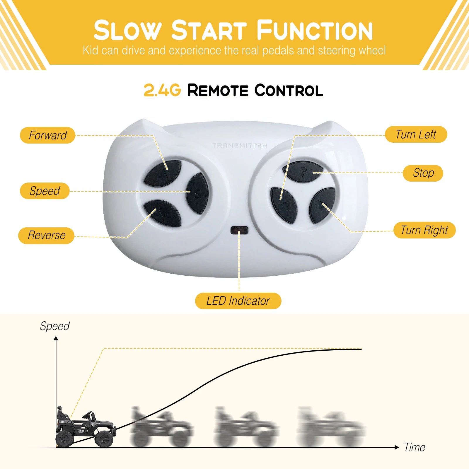- Remote-control operation lets you guide speed, steer safely, and pause or stop play without interrupting your child's imagination, for long-lasting, worry-free play.