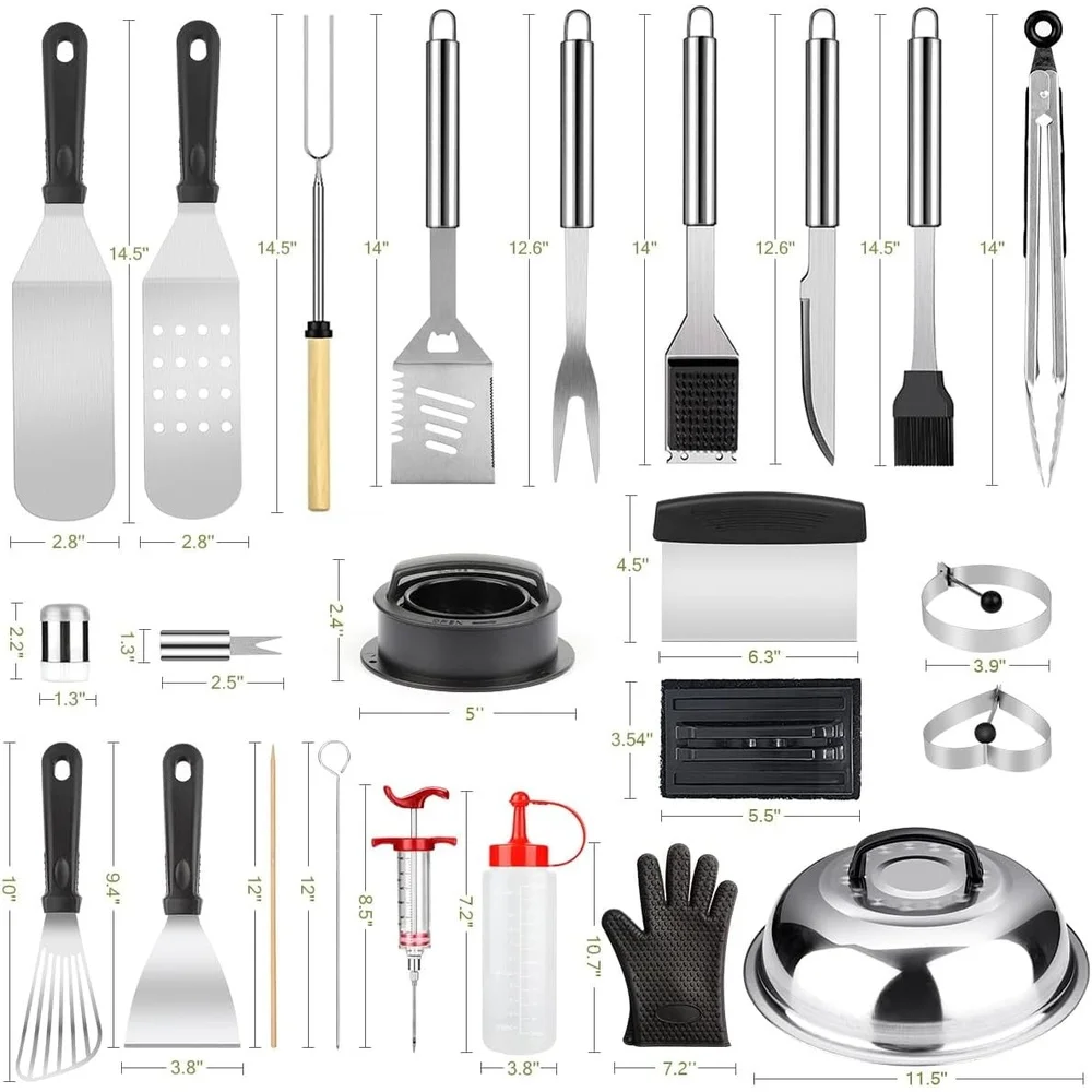 - Versatile tools for griddle cooking: spatulas, scrapers, tongs, brushes, and more, crafted to improve control, precision, and cleanup after every sear, plus easy storage.
