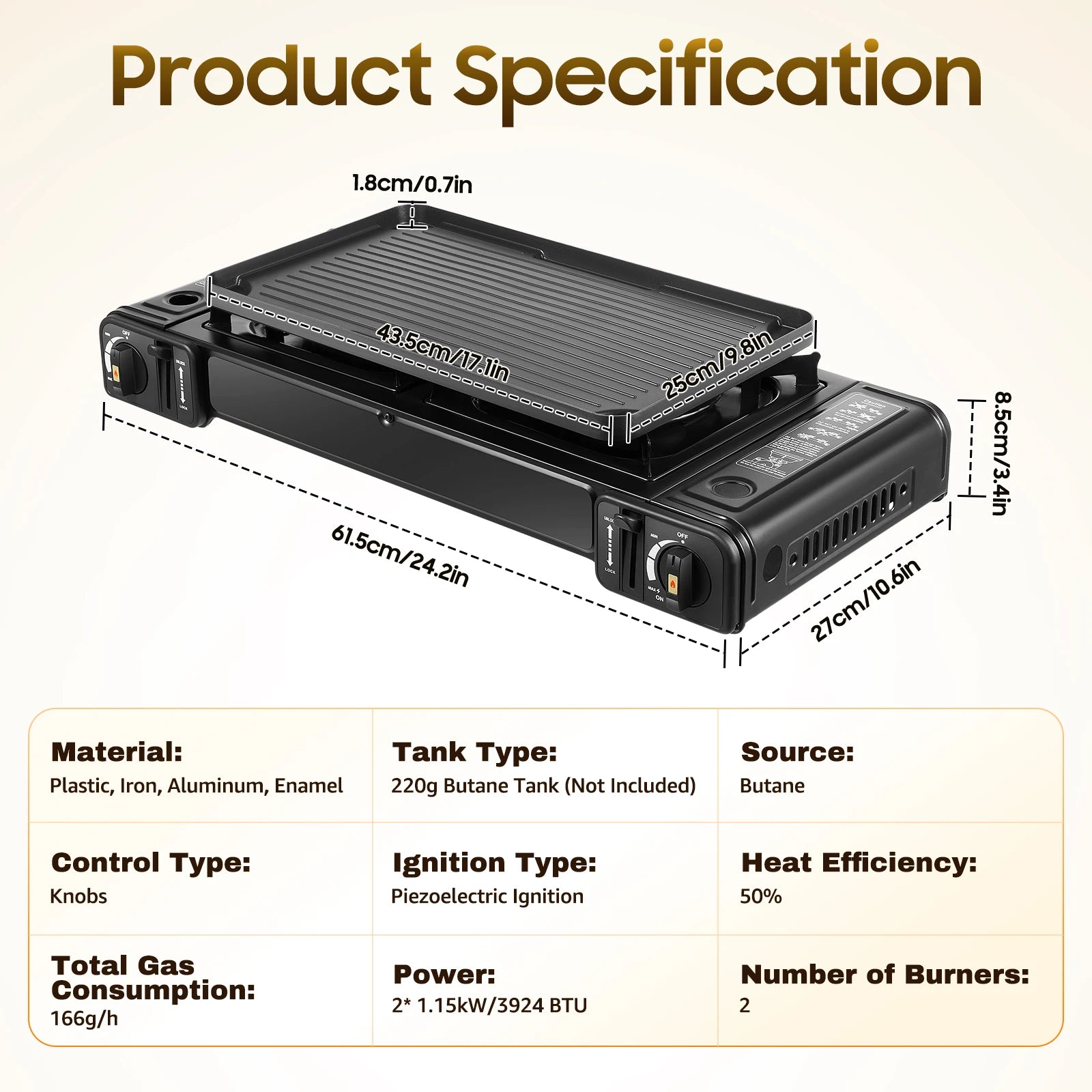 Turn every campout into a savory success with the 2in1 2-Burner Portable Camping Stove kit.