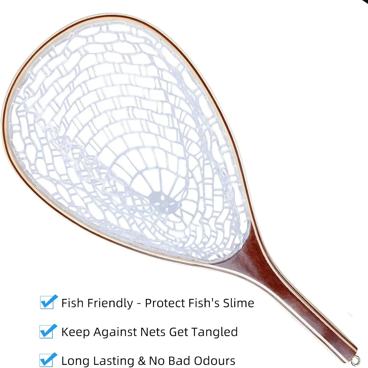 HiMIS invites you to use the Fishing Net Trout With Wooden Handle Rubber Mesh—a lightweight tool you can rely on to protect your catch and your gear.