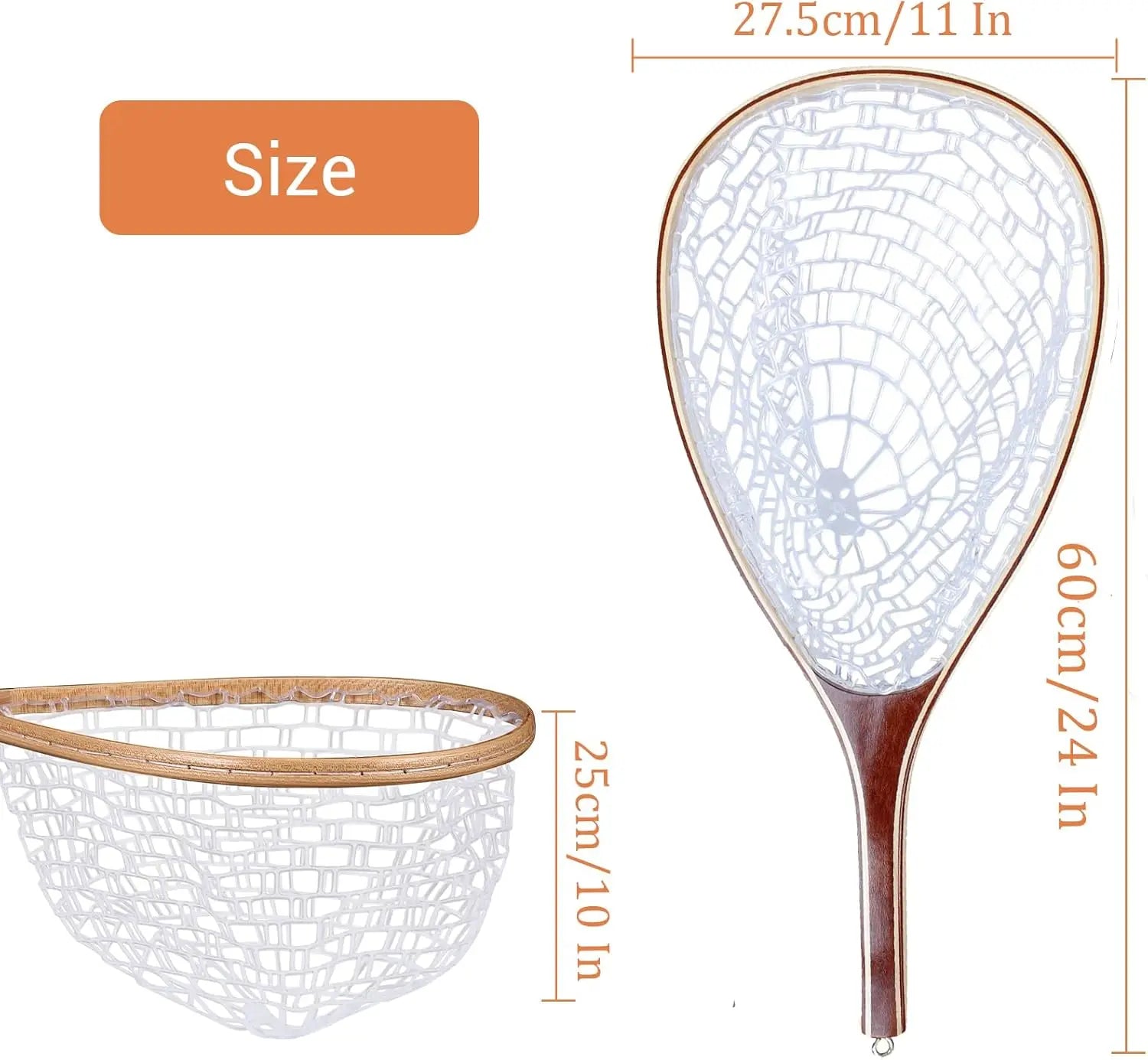 HiMIS Fishing Net Trout With Wooden Handle Rubber Mesh