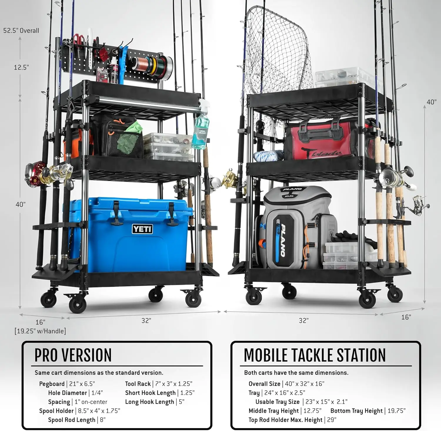 YTYIN Mobile Tackle Station 16 Rod Holder Cart Organizer