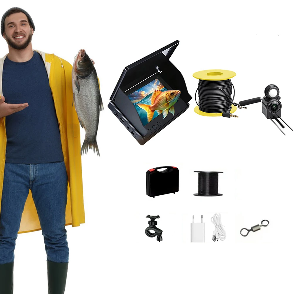 Note: Underwater Fishing Camera 4.3 Inch IPS Monitor Ice Fishing Camera 220° Ice Fishing Fish Finder Night Vision Portable Video Fish Finder Waterproof 15/20/30m Cable for Ice Boat and Lake Fishing Feature: 1.HD Large Screen: The 4.3-inch HD IPS display offers exceptional clarity and a wide viewing angle, allowing you to easily penetrate the ice and monitor underwater terrain and fish dynamics in real-time. 2.Night Vision Waterproof Camera: Equipped with a 220° wide-angle advanced waterproof camera with IP68 rating, it provides HD images in both clear and turbid waters. The night vision function is enhanced by 12 infrared LEDs and adjustable brightness. 3.Long Cable for Deep Waters: The cable is available in 15/20/30 meters and is cold-resistant, pressure-resistant, and corrosion-resistant, supporting up to 80 kg. 4.Long Lasting Battery Life: Built-in 5000mAh rechargeable battery provides 5-8 hours of endurance without interruptions. 5.Easy Installation & Multi-functional: Comes with an easy-to-use installation system, can be fixed on fishing rods with included brackets for hands-free operation. Specification: Origin: Mainland China Product size: 210.00x145.00x85.00mm Product size: 8.27x5.71x3.35inch Battery capacity: 5000mAh Headphone port: 14/17 Motherboard voltage: 7.4v Material: Aluminum Alloy